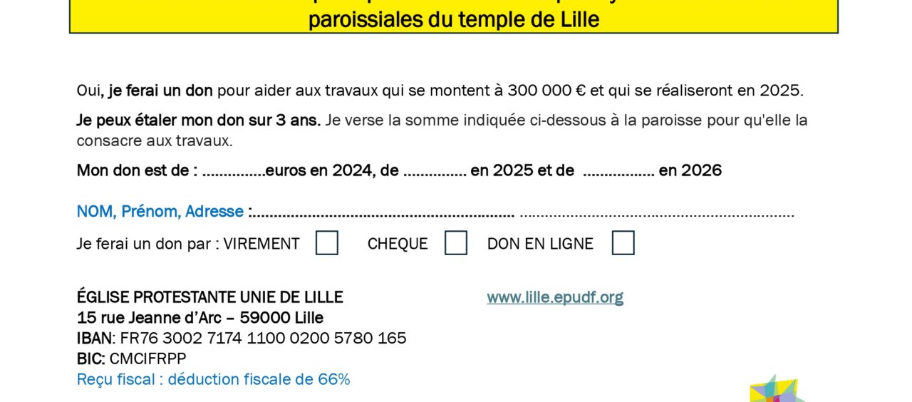 L’Eglise Protestante Unie de Lille est soutenue par la fondation Martin Bucer pour rénover le presbytère et les salles paroissiales